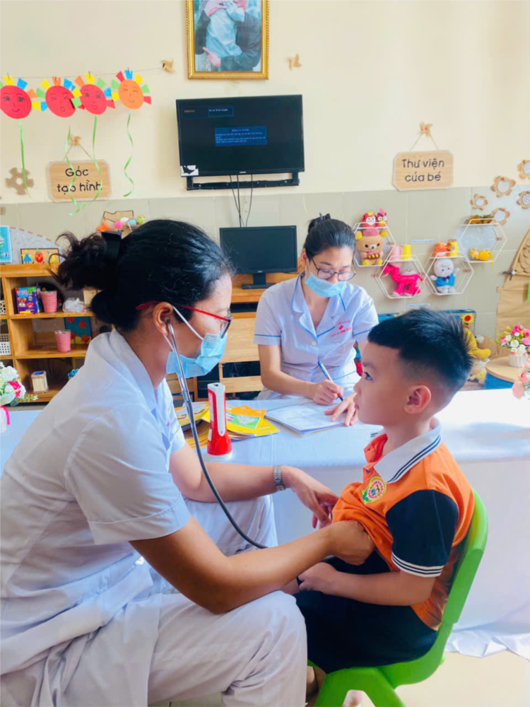 🌺Trong các hoạt động của nhà trường, công tác chăm sóc sức khoẻ cho trẻ là một việc làm luôn được nhà trường đặc biệt quan tâm đặc biệt. Việc tổ chức khám sức khoẻ định kỳ cho trẻ được nhà trường duy trì thành nề nếp thực hiện thường xuyên theo kế hoạch.