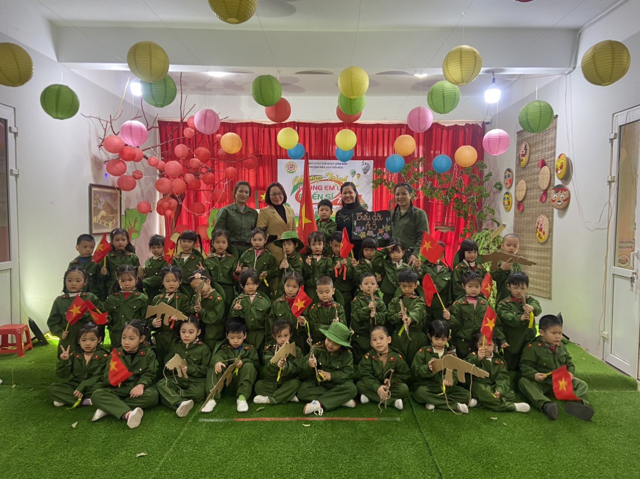 Chương trình đã mang đến cho các bé một buổi trải nghiêm vui chơi đầy hứng thú vui vẻ. Các bé đã được giao lưu với các cô chú bộ đôi, được mặc trên mình màu áo xanh và đóng vai người chiến sĩ tham gia vào các trò chơi vừa sức phù hợp với khả năng của mình. Qua đó, khơi gợi ở trẻ tình yêu trân trọng các chú, những người ngày đêm miệt mài giữ gìn sự bình yên dân tộc, cho chúng ta có cuộc sống hòa bình như ngày hôm nay