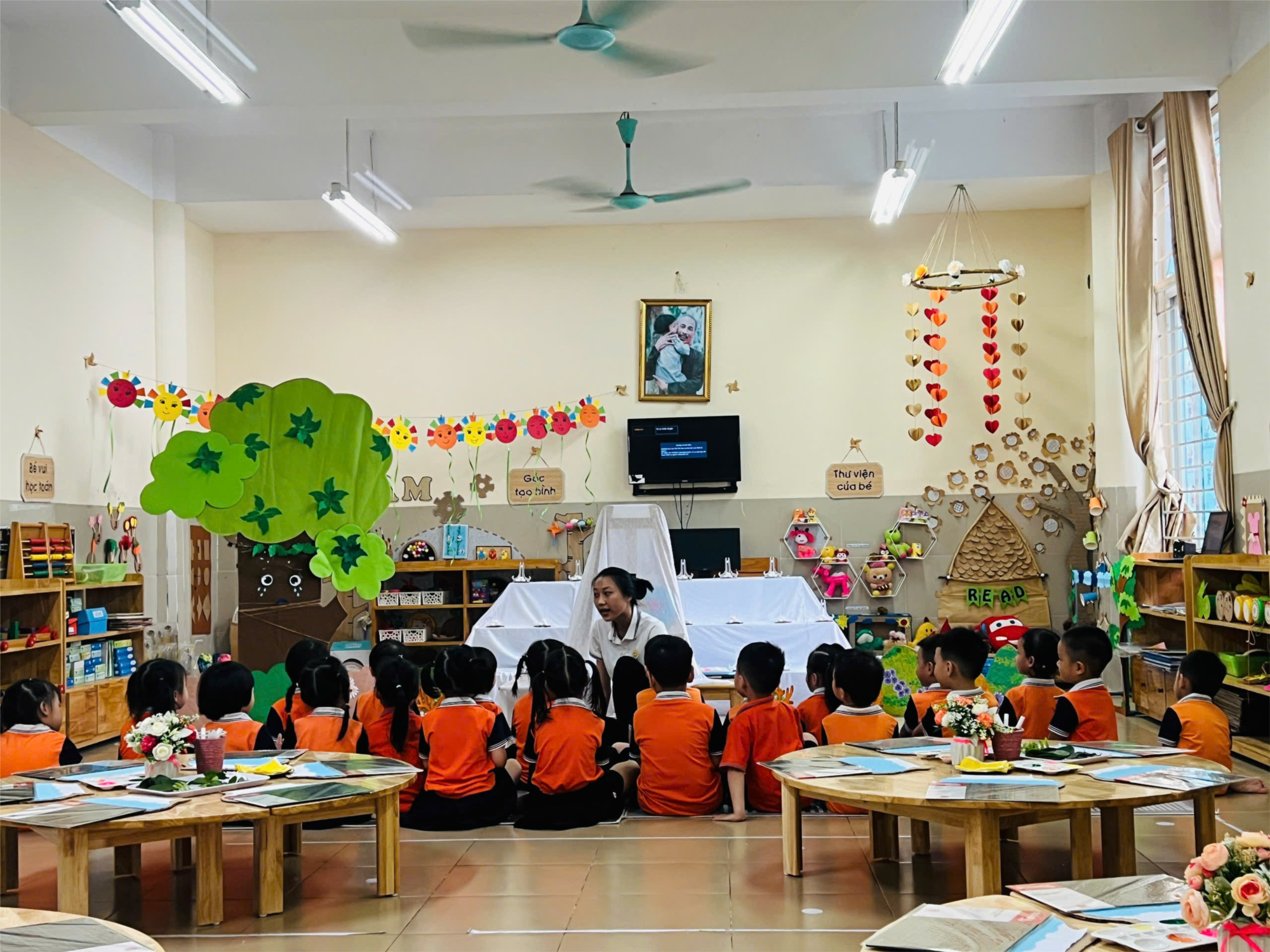🎶Đến với hội thi GVG cấp trường, cô và trò lớp MGN B3 trường Mầm non Tuổi Hoa tham gia với hoạt động tạo hình: In hình con cá từ những chiếc lá cây