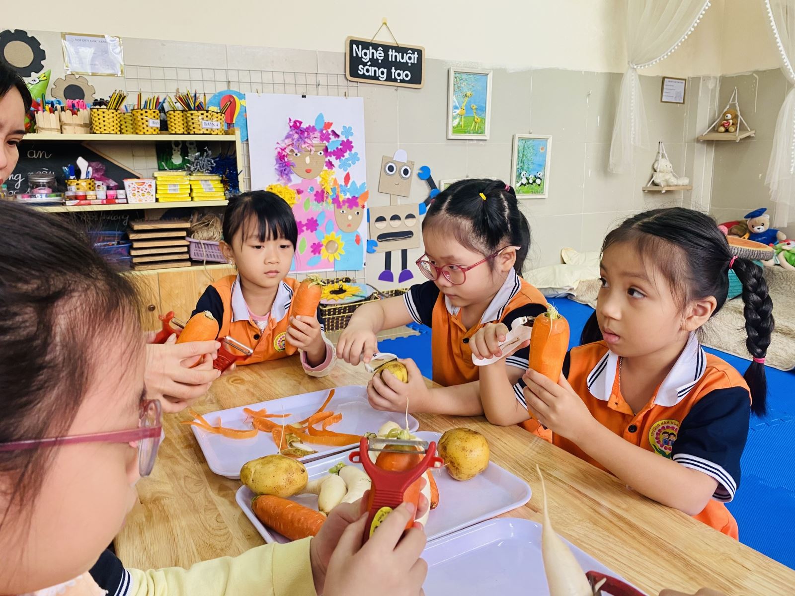 Các bé lớp MGL A1 đã được cùng cô trải nghiệm “Nạo củ, quả” tham gia vào hoạt động các bạn nhỏ vô cùng hào hứng và say mê.