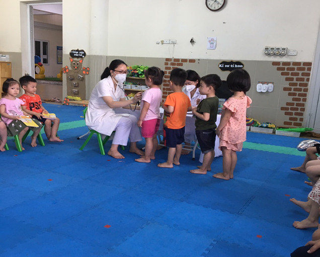 Hình ảnh:Bạn nhỏ lớp mẫu giáo lớn A3 đang được khám về tim mạch, hô hấp…